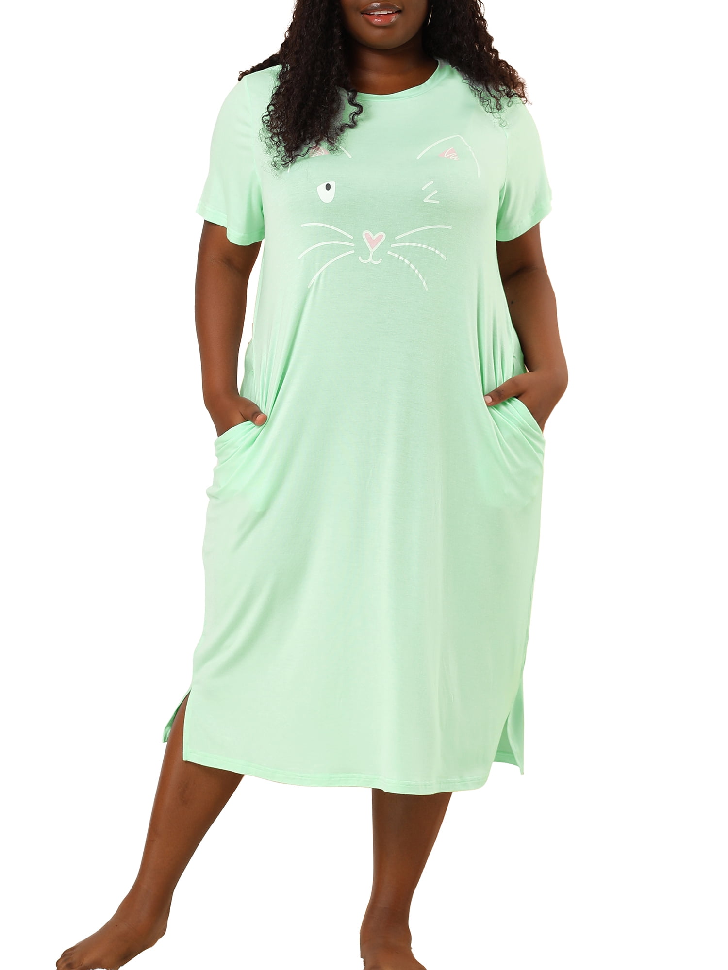 Agnes Orinda Juniors Plus Size Nightgown Cat Print With Pocket Sleep Dress Sleepwear Walmart Com